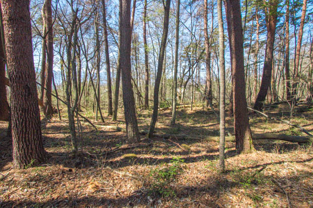 レインボーラインから北に入ったところ。近隣は移住者や別荘使いの住宅が点在する静かな森。敷地面積が広いので、ゆったりとした森暮らしを満喫。南アルプスの眺望。標高約940m。侵入路は東側の私道から。
